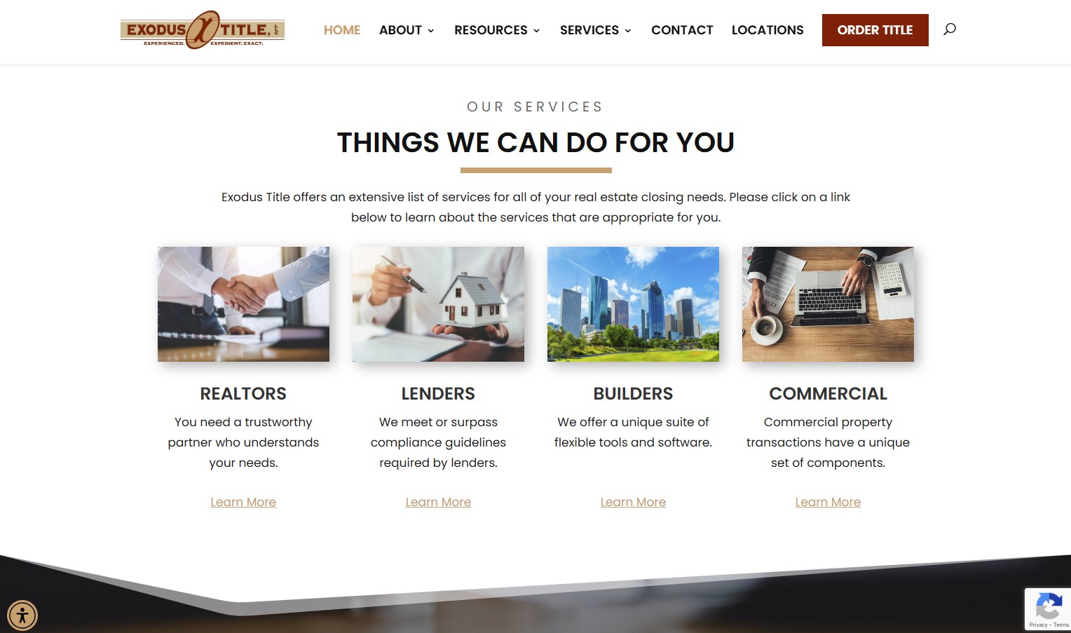 Exodus Title’s website balances professionalism with approachability. The layout is easy to navigate, and the messaging emphasizes support throughout the closing process.